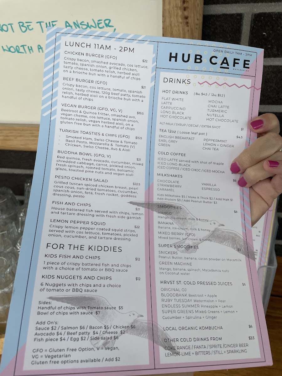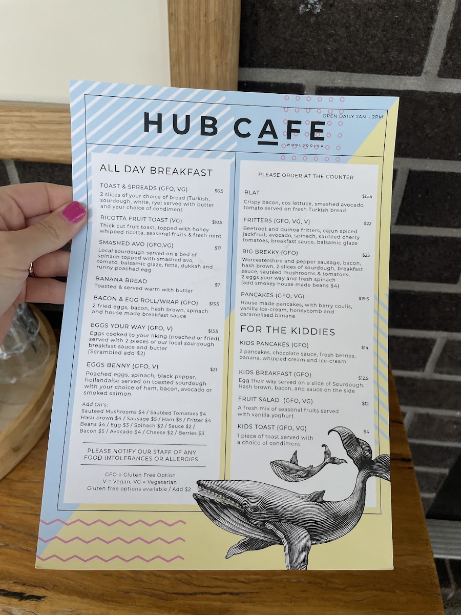 Hub Cafe Woolgoolga Menu